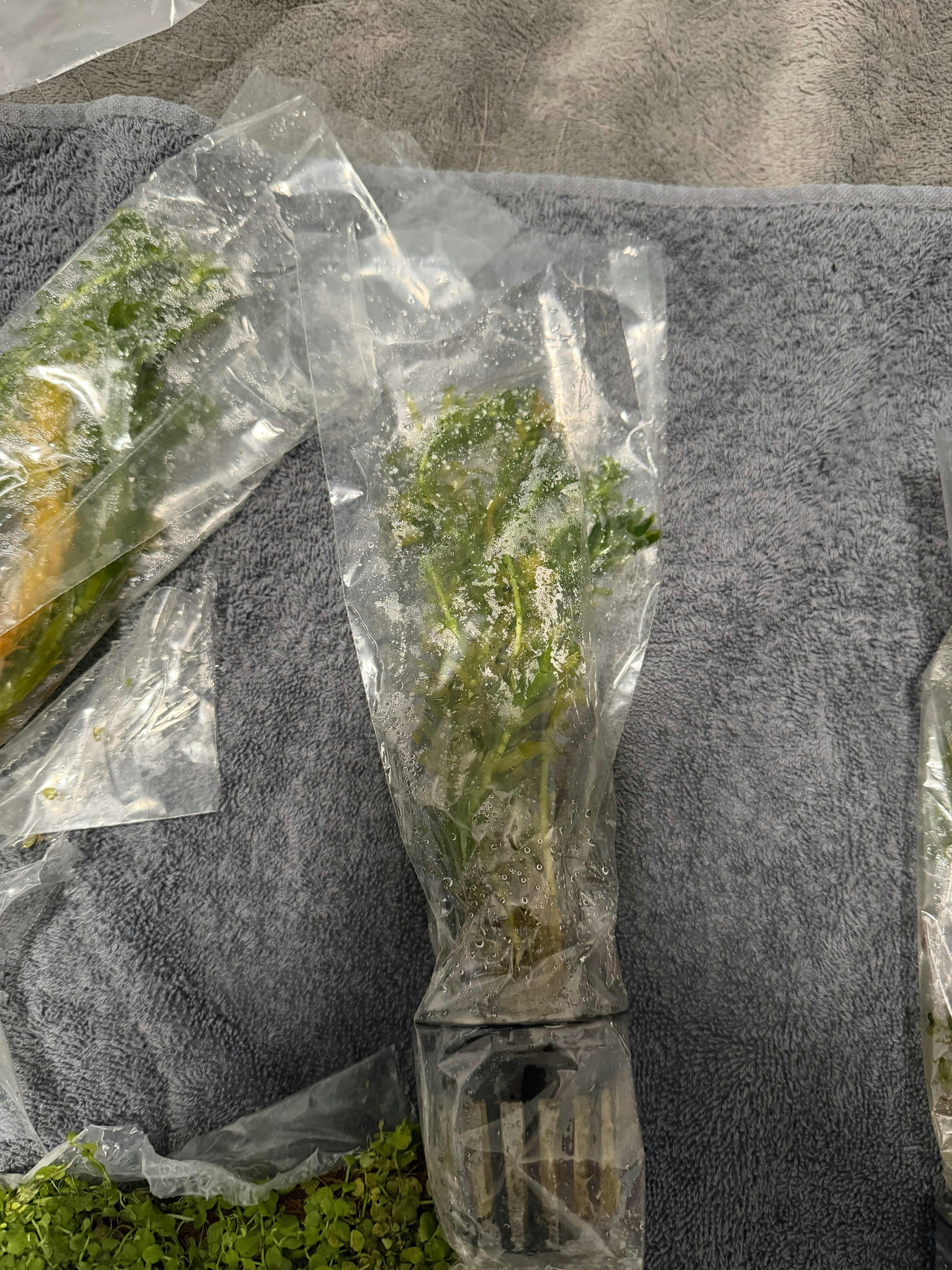 - Each plant is carefully packaged in sealed plastic bags to hold in moisture during the shipping process.