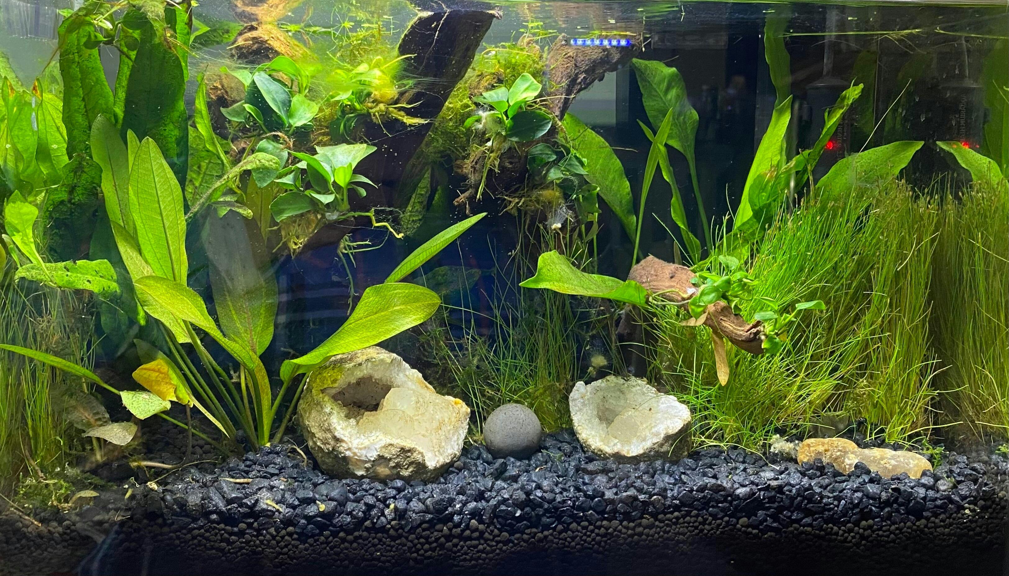 * 1x Anubias Barteri (Nana Petite): A small, hardy plant with deep green leaves that's perfect for low-light tanks.